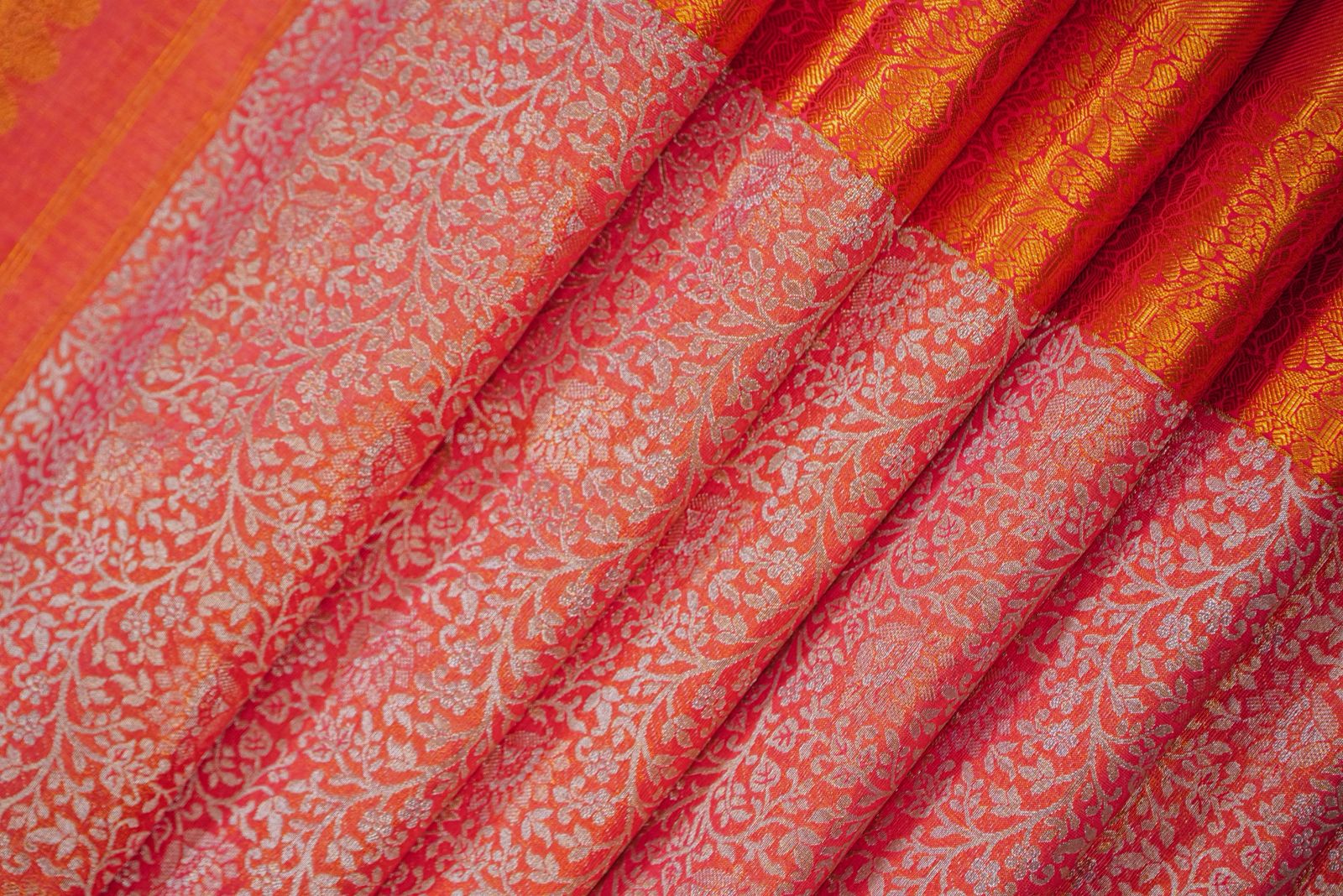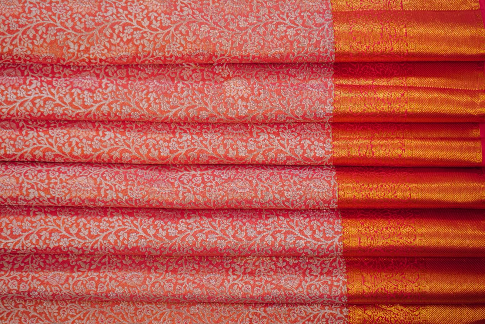 Floral Zari Orange Red Grandeur