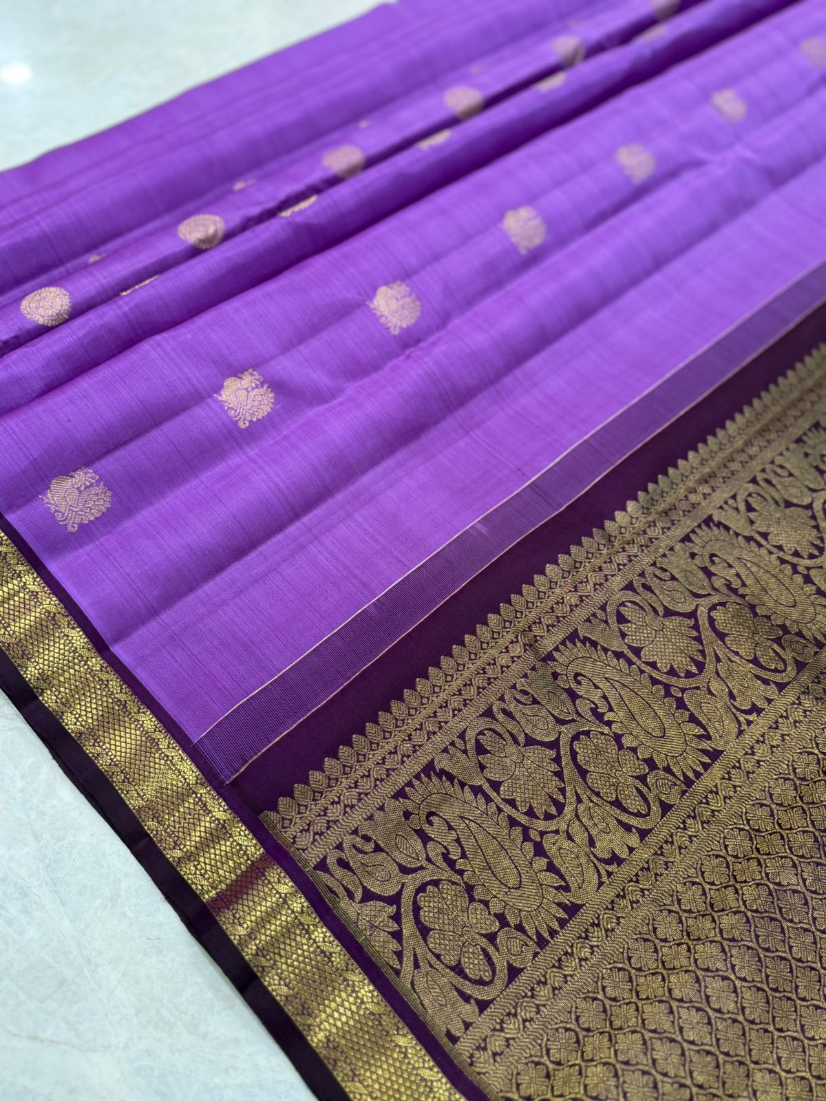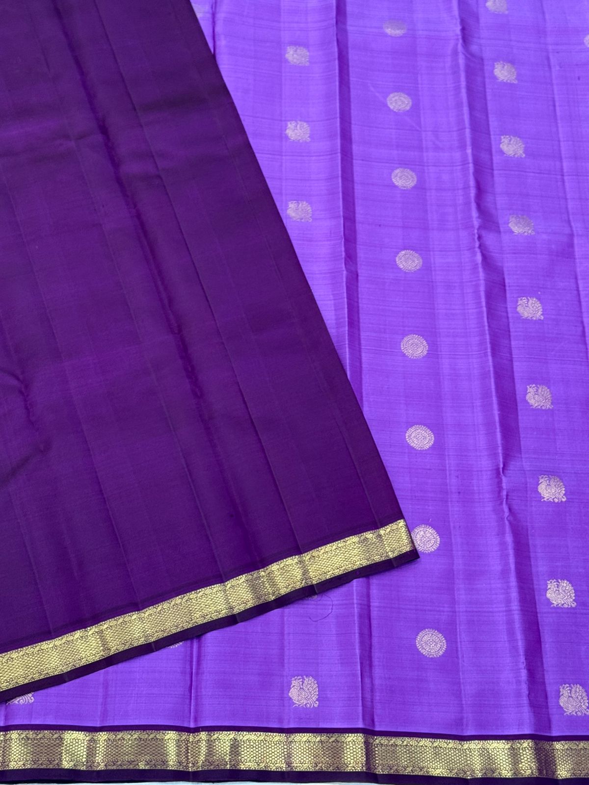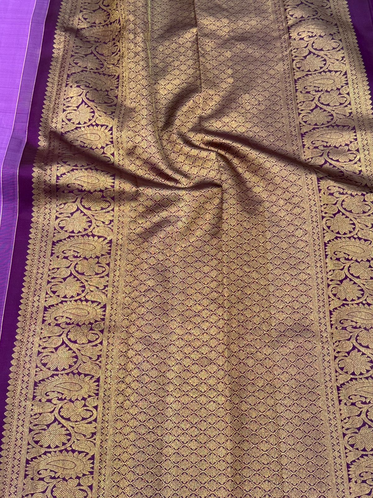 Lavender and Dull Gold Zari Handwoven Kanjivaram Saree