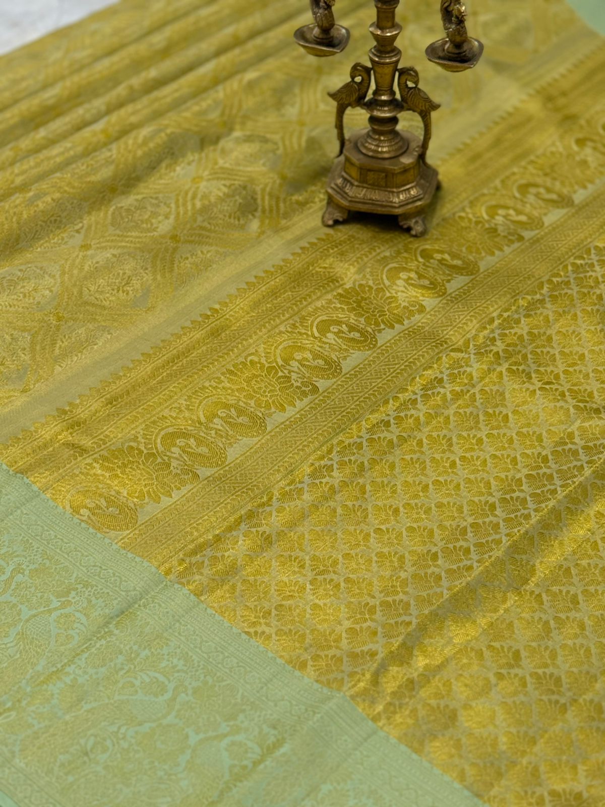 Pastel Green Peacock Zari Kanjivaram